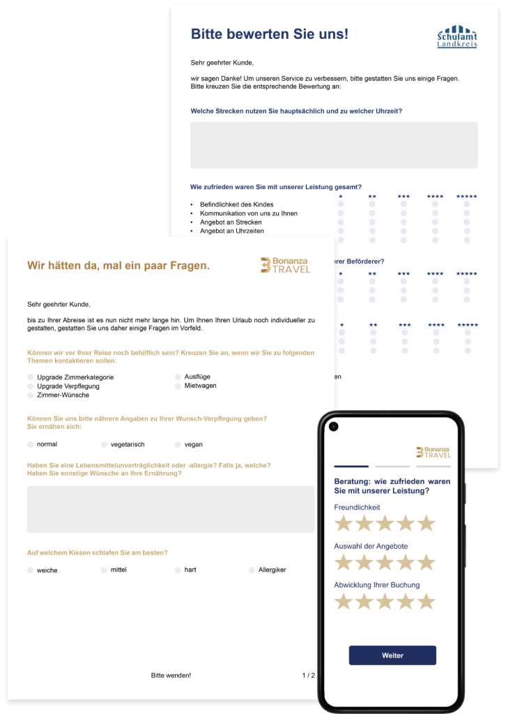 Fragen Sie gezielt, nach Feedback und Verbesserungsvorschlägen. Sie geben die Fragen individuell vor!